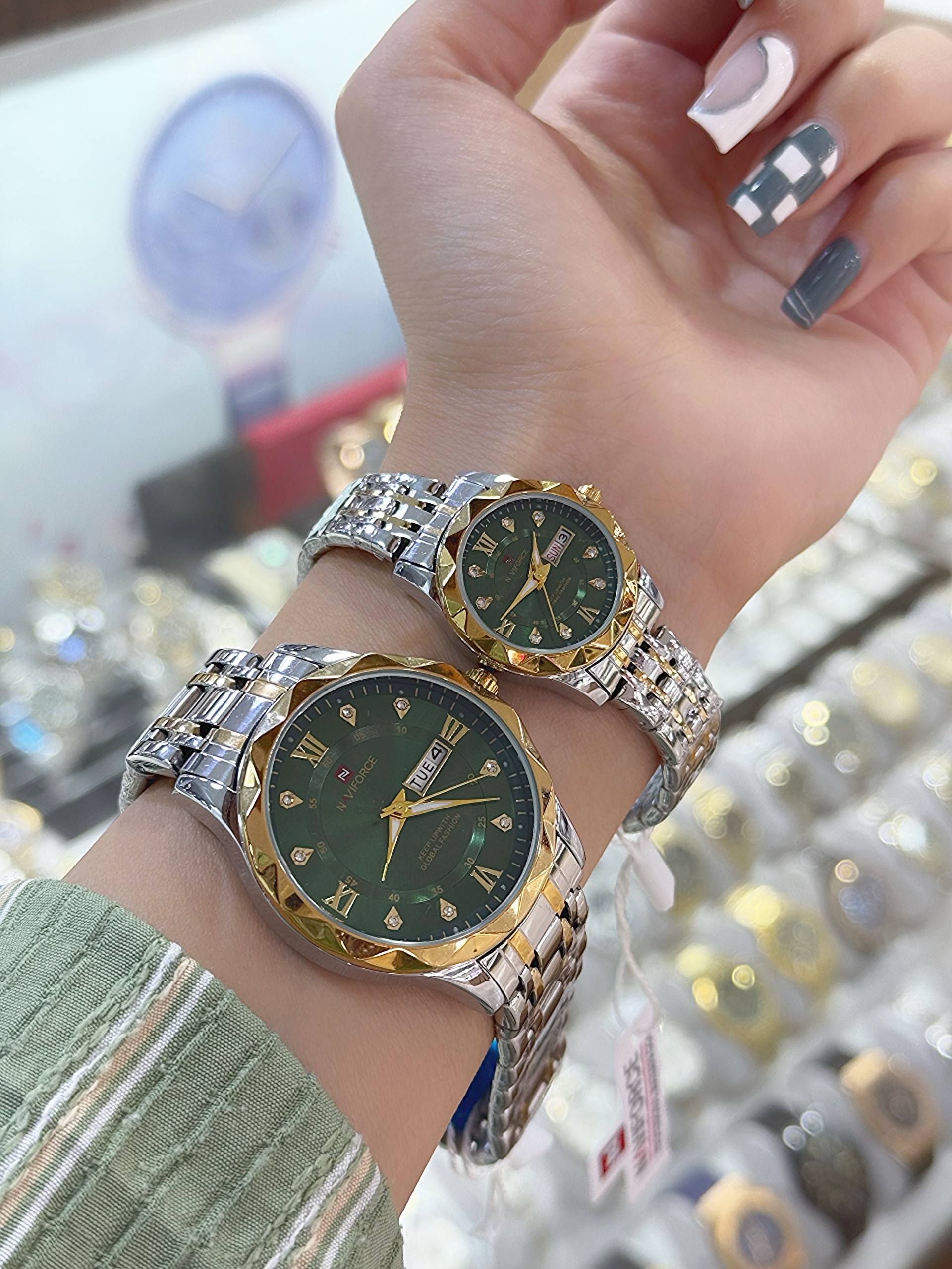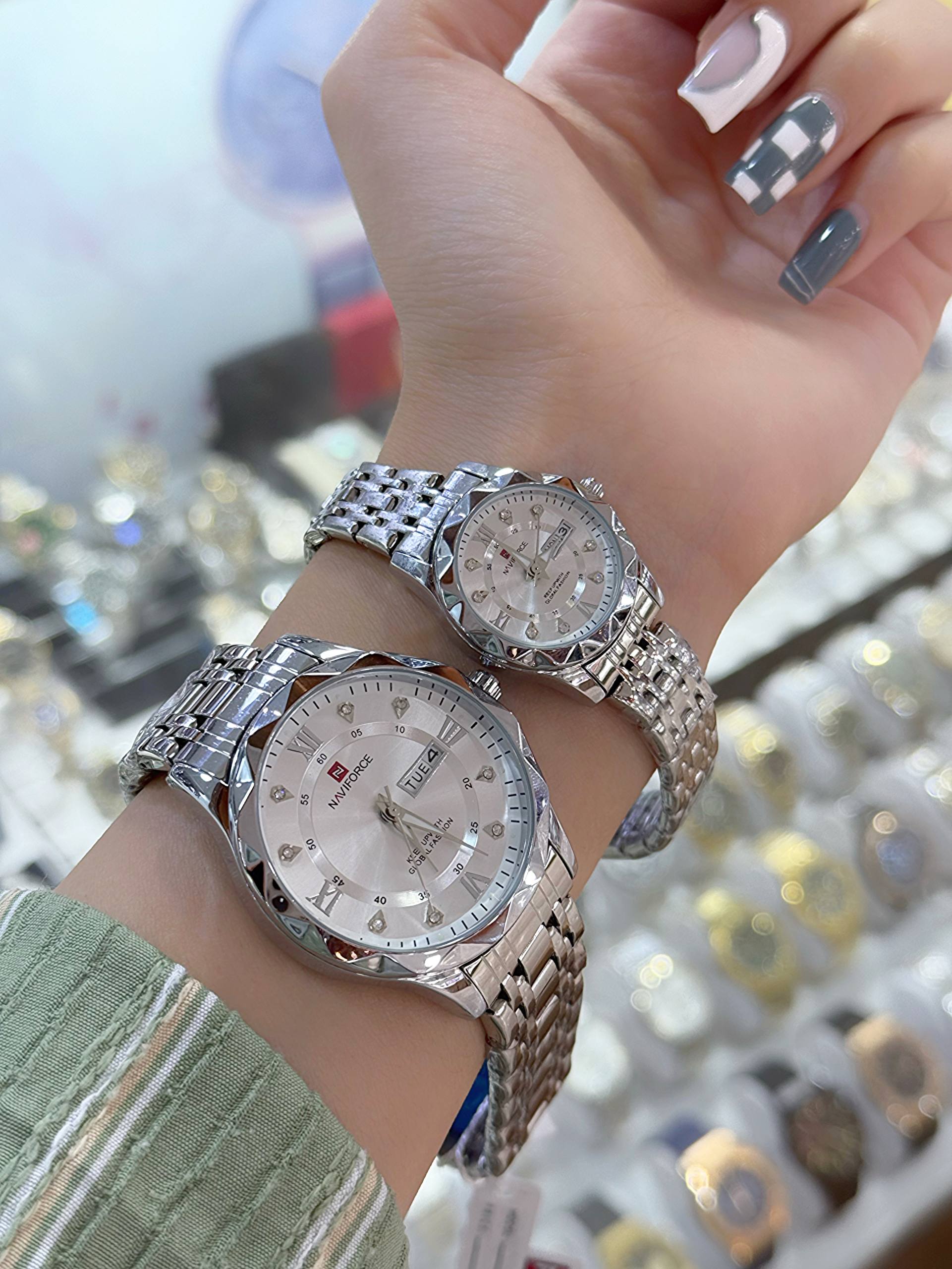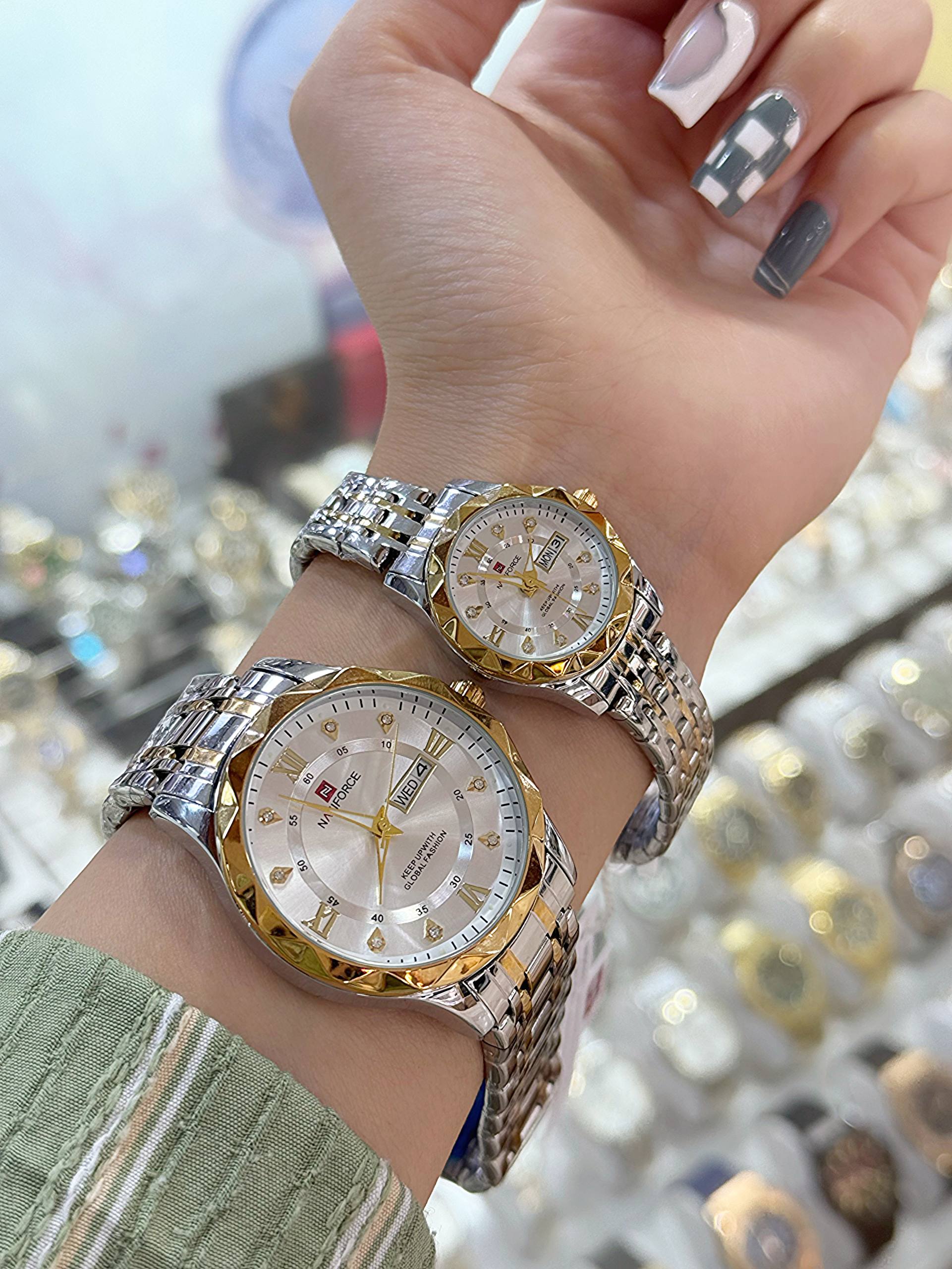ویژگی های محصول موتور کوارتز مقاوم در برابر آب طرح الماس دارای روز شمار ایام هفته صفحه شب نما بند فولاد استیل قفل پروانه ای استیل مخفی شیشه سافایر ضدخش