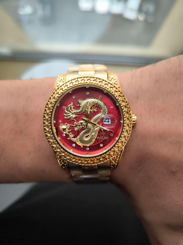 ساعت مردانه فلزی مارک رولکس اژدها رنگ ثابت تقویم دار قفل اصلی شیشه ذره بینی.